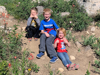 We hiked around Tony Lake Friday before returning to camp to make foil dinners and s'mores. It was stressful not knowing if we would find a camping site, but very restful once we got settled in. My favorite part of the area were the alpine wildflowers. They were everywhere! Brooklyn had a hay day collecting them and is hoping if she plants them in our yard, flowers will grow. The kids said their favorite part was the water and having friends with us.